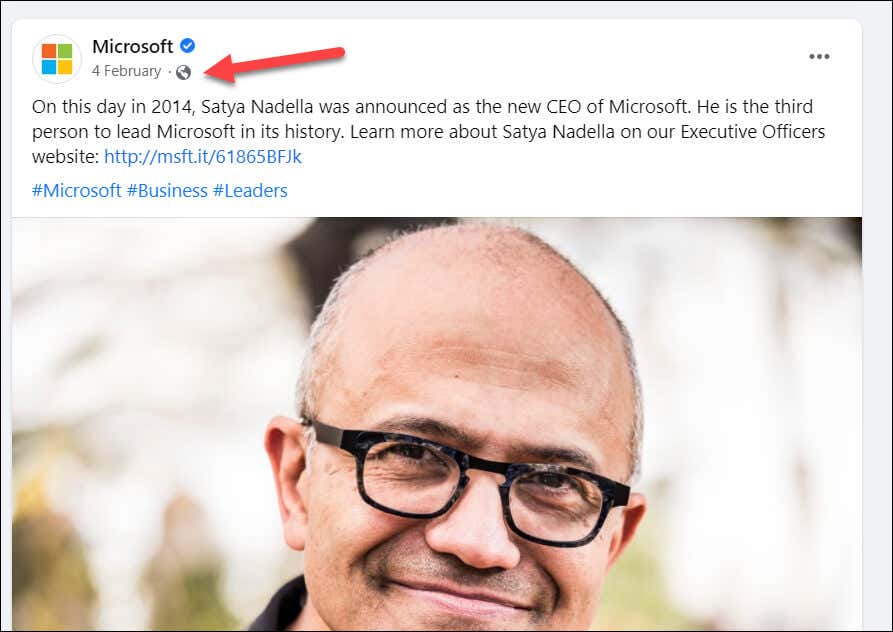 Estas publicaciones tienen un ícono de globo terráqueo debajo de su nombre.