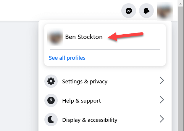2. Haz clic en el ícono de tu perfil en la esquina superior derecha, luego selecciona tu nombre.