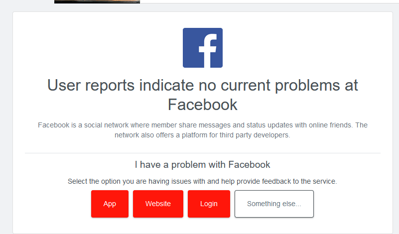 1. La página siguiente mostrará el estado del servidor de Facebook.