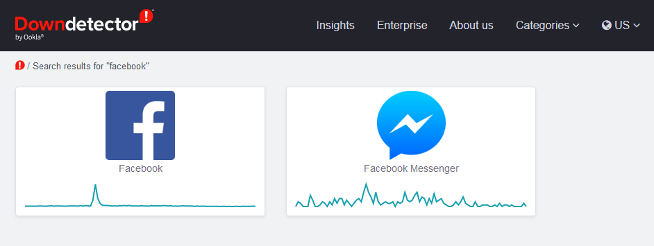 Puede verificar el estado del servidor de Facebook utilizando el sitio web de Downdetector: