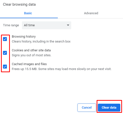 1. Cuando se abra una ventana emergente, seleccione todo el contenido que desea eliminar y confirme haciendo clic en el botón Borrar datos botón.