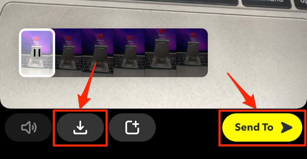 1. Toque en el icono de descarga para guardar el video en bucle, o seleccione Enviar a para compartir el Bounce a tu historia.