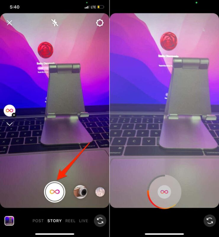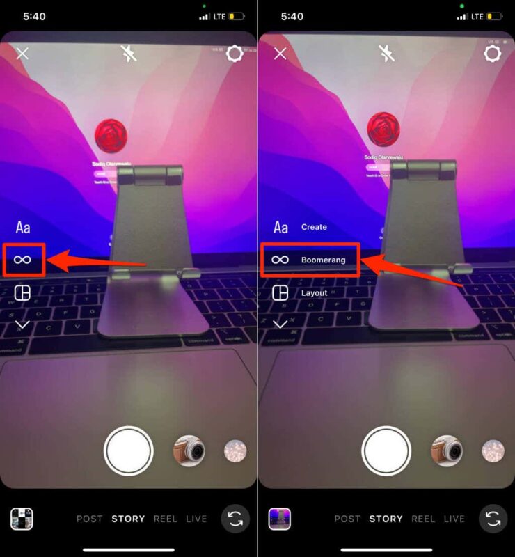 1. Tocar Bumerang (el ícono de Infinito) en el lado izquierdo de la pantalla.